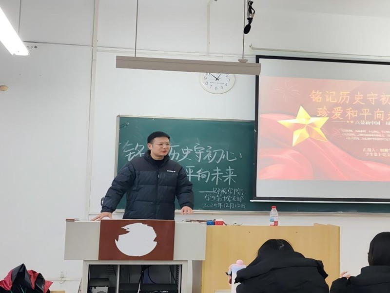 12月12日,财税学院学生第十党支部在2号教学楼502教室开展“铭记历史守初心,珍爱和平向未来”党日活动,此次活动由财税学院学生第十党支部姜磊主持,支部全体成员参加。