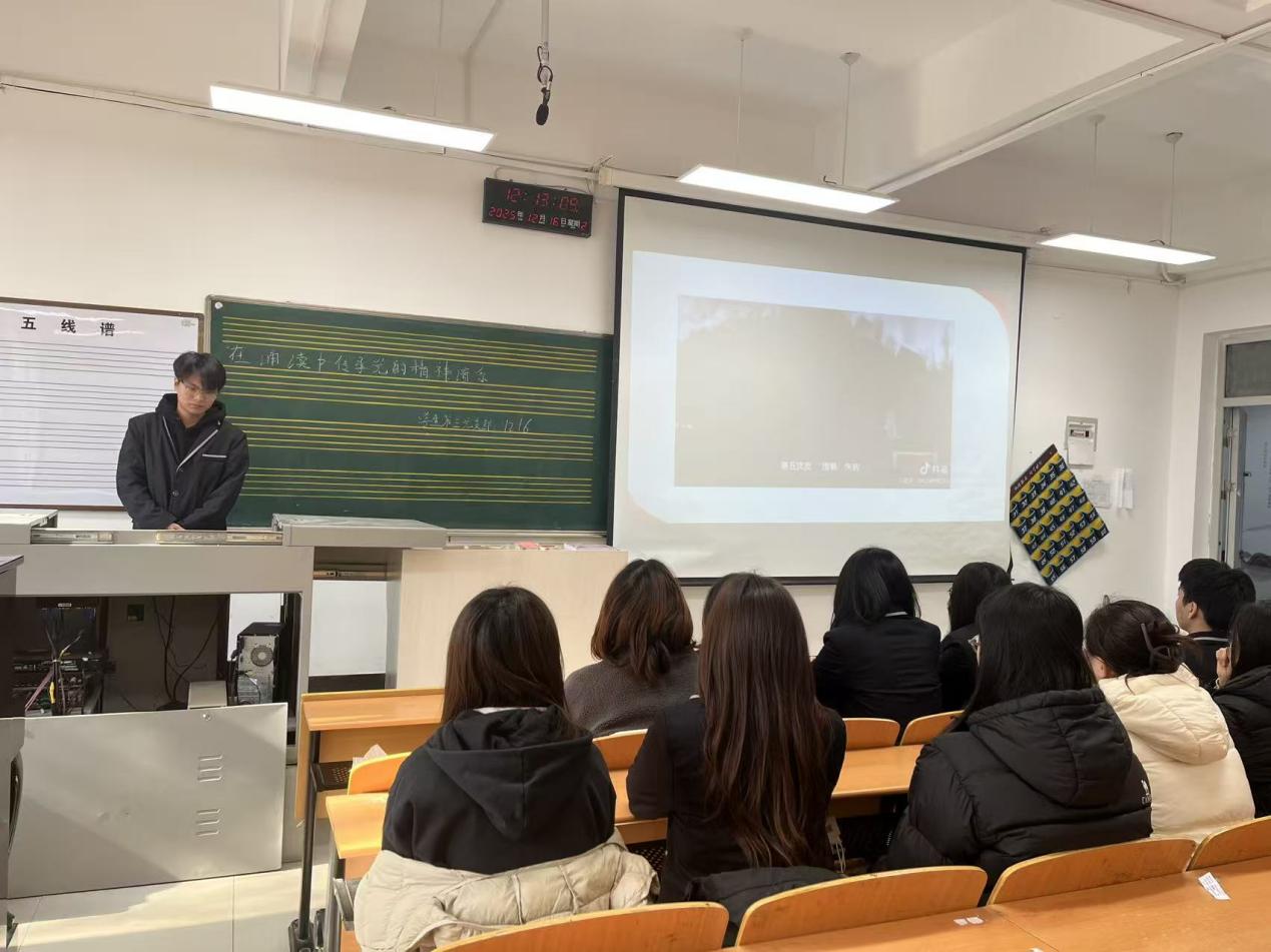 为传承红色基因,让支部成员们深入了解优秀榜样的事迹和精神,明确自身努力方向,12月16日,艺术学院学生第三党支部在3号楼206教室开展“在诵读中传承党的精神谱系”主题党日活动。