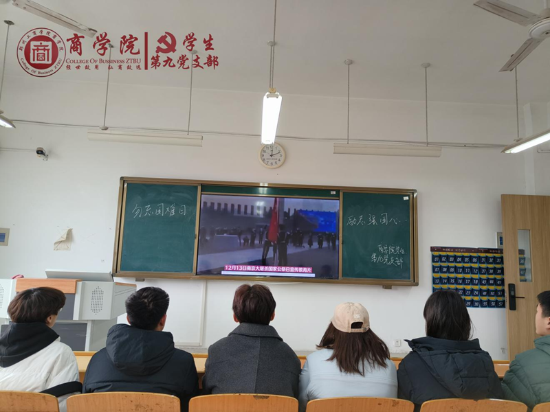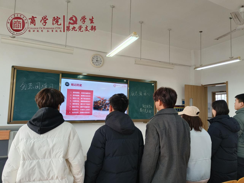 12月23日,商学院学生第九党支部于2号教学楼618教室开展“勿忘国难日,励志强国心”主题党日活动。活动由李佳琪同志主持,学生第九党支部全体成员参加。