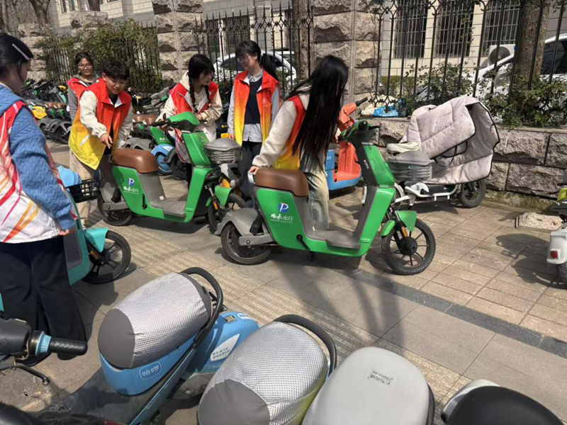 活动伊始,段荣同志强调了雷锋精神作为中华民族宝贵精神财富的时代价值。她表示,雷锋精神是一面永不褪色的旗帜,“奉献、友爱、互助、进步”的志愿精神与共产党员的初心使命高度契合,新时代青年应将雷锋精神融入日常,以实际行动诠释为人民服务的根本宗旨。随后,支部成员开展志愿服务,在1号门出入口、人行通道等关键位置,耐心劝导乱停乱放、乱扔垃圾等不文明行为,全力维护校园门口通行秩序。最后,在单车规范行动中,支部成员对周边乱停乱放、倒地的共享单车进行统一整理,规范停放至指定区域,仔细清理单车里的垃圾与小广告。在志愿服务的同时,支部成员还向过往同学积极宣传雷锋精神与文明出行理念,带动更多师生参与到文明校园建设中来。