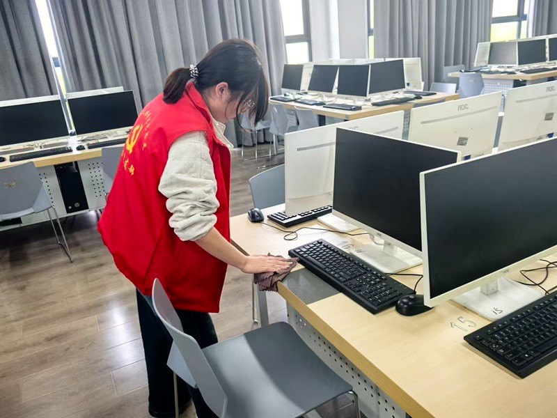 活动开始,张广伟同志作动员讲话,明确各小组任务分工,强调安全注意事项、劳动纪律及协作要求,确保活动有序开展。随后,各小组按既定安排进入指定区域,开展卫生清扫与环境整治工作,包括规范实验物品摆放、清理卫生死角等具体事项。活动期间,刘一鸣同志进行现场巡查督导,重点检查操作规范、排查安全隐患,及时协调解决现场问题,保障活动安全推进。最后,经全体成员共同努力,综合实验楼一区实验环境得到显著改善,教学科研场所的整洁度、有序性及安全性均有效提升,为师生创造了更优质的工作学习条件。